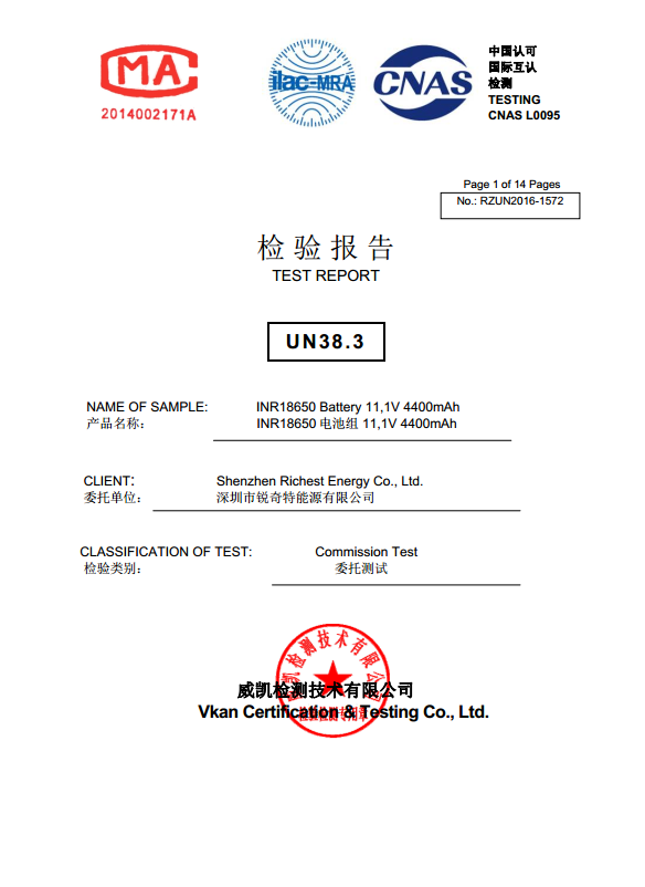 锂电池设计、研发、生产、销售专业厂商产品通过CE、ROHS、FCC、UN38.3、MSDS、BIS等测认证